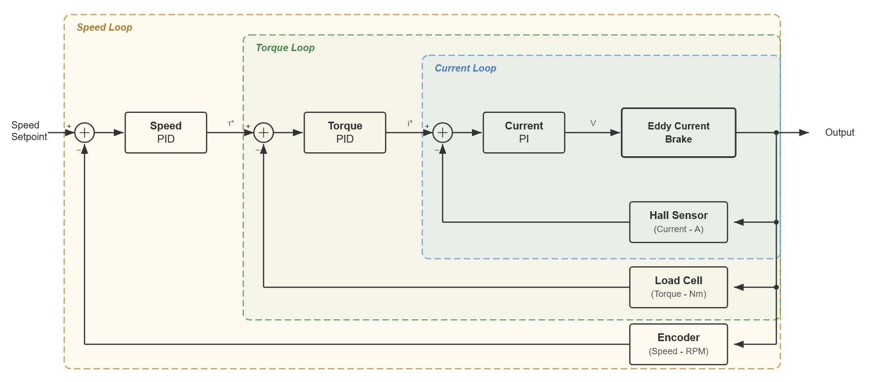 The braking torque is proportional to the current applied to the coils and the rotor speed. At low speeds, the braking force is weaker, which is why eddy current brakes are less effective at very low RPMs. However, their fast response and precise control make them ideal for motor testing.