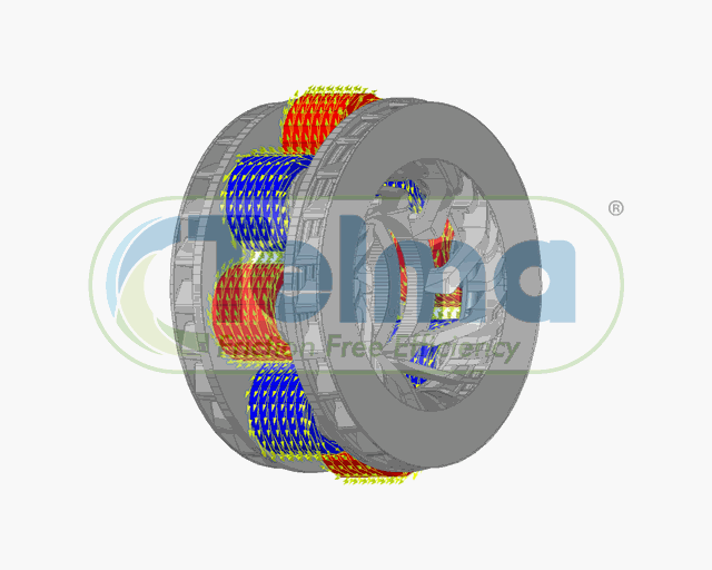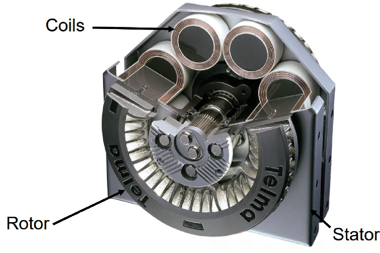 When voltage is applied to the coils, a magnetic field is generated. As the rotor (lateral discs) spins through this magnetic field, eddy currents are induced in the steel rotors. According to Lenz’s law, these currents generate an opposing magnetic field that resists the motion of the rotor creating a smooth and controllable braking force.