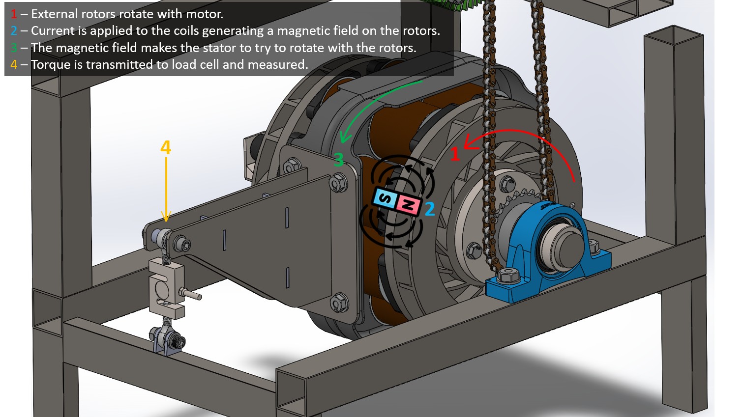 During the electric motorbike project, a company allowed the team to test the motorbike on their dyno, but that dynamometer was too large and heavy for practical and frequent use. Also, the electric motorbike project was closed due to the lack of university students committed to the project. This raised a simple question: why not develop my custom dynamometer?